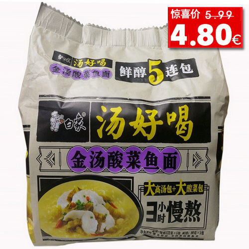 (五连包) 白象 汤好喝 金汤酸菜鱼面 5x118g (Yummy Picked Cabbage) 日期见内页