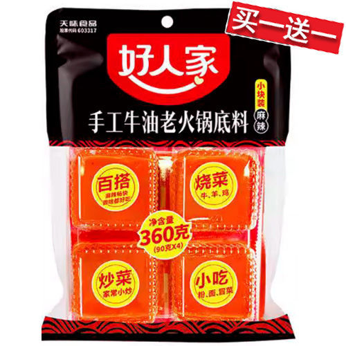 买一送一! 好人家 手工牛油老火锅底料 4块装 360g 日期 2025-12-28