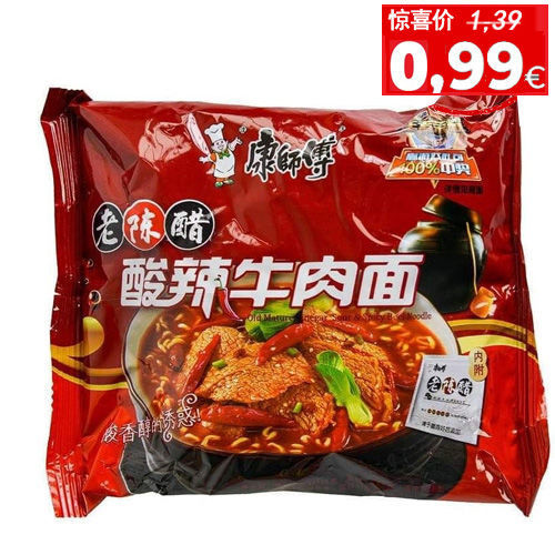 Palmöl, Speisestärke, Salz, Gewürz, Essig, Verdickungsmittel E412, Säureregulatoren: E339, E501, Emulgator: E965, Geschmacksverstärkern: E363, E635, Frühlingszwiebel, Chili, Chinakohl, Karotte, Koriander E621, Farbstoff E501, Schaumverhüter E500.