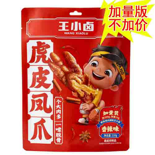超级加量版! 王小卤 虎皮凤爪 香辣味 大包装 210g 外皮酥软 易脱骨