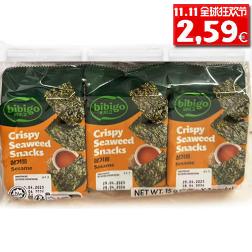 Bibigo 3包组合 即食海苔紫菜 原味 15g 日期见内页
