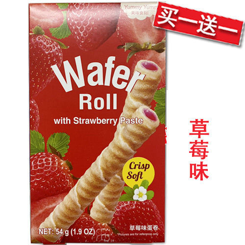 买一送一! 美味食刻夹心威化脆蛋卷 草莓味 (日期 2025-06-10) 54g
