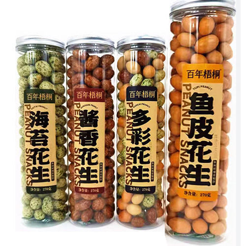 ERDNÜSSE (36%), Klebereis-Mehl, Zucker, WEIZEN Mehl, Glukosesirup, SOJASAUCE, Pflanzenöl, Speisesalz, Stärke, Mononatriumglutamat, Seetang-Streifen (0,4%), Lebensmittelzusatzstoffe (Natriumbikarbonat, 5'-Dinatrium-Nukleotid, Gelb Orange S, Sonnenuntergangsgelb).